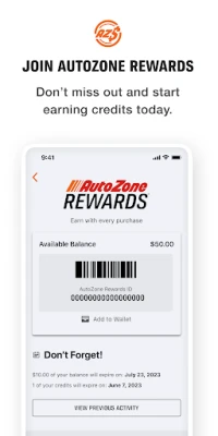 Track your AutoZone Rewards balance right on the home screen. Not a member? Sign up today to start earning money for your purchases.