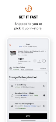 Order the right parts and accessories for your car or truck with just a few taps. Get the parts you need fast with same-day store pick up or convenient ship to home delivery. Track your AutoZone Rewards balance and get information on your local store straight from the home screen.