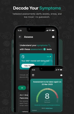 Use our clinical-grade mental health assessments to check your mood, stress, and anxiety levels — early detection made easy in our mental health assessment app.