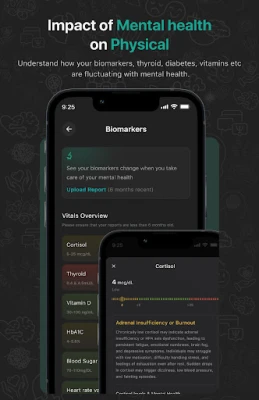 Upload lab reports and track how your mental health is impacted by physical conditions like vitamin levels, thyroid, sugar levels, IBS and sleep — a complete mind-body health tracker.