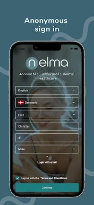 Nelma is an app that provides fast, simple and anonymous access and counselling with profefssional therapists, counselors and psychologists from around the world at affordable prices.