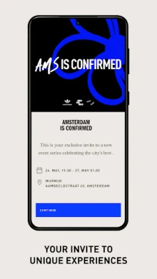 Get invited to both in-app and real-life experiences tailored to your interests and location: secret underground music gigs, A-list fashion launches, art shows, location-triggered surprise moments, behind-the-scenes previews of what's coming to CONFIRMED and more. Some experiences are adiClub-exclusive.
