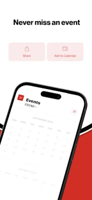 NEVER MISS AN EVENT The event section shows a list of events throughout our community. Easily add an event to your own calendar and/or share the event with friends and family with one tap.